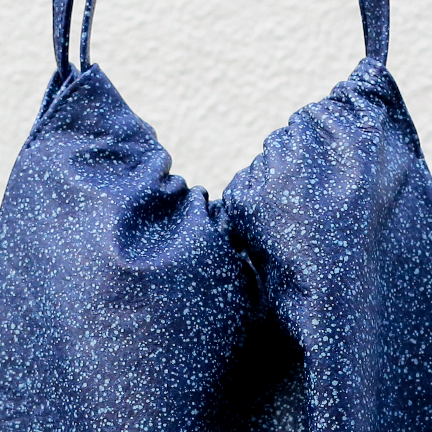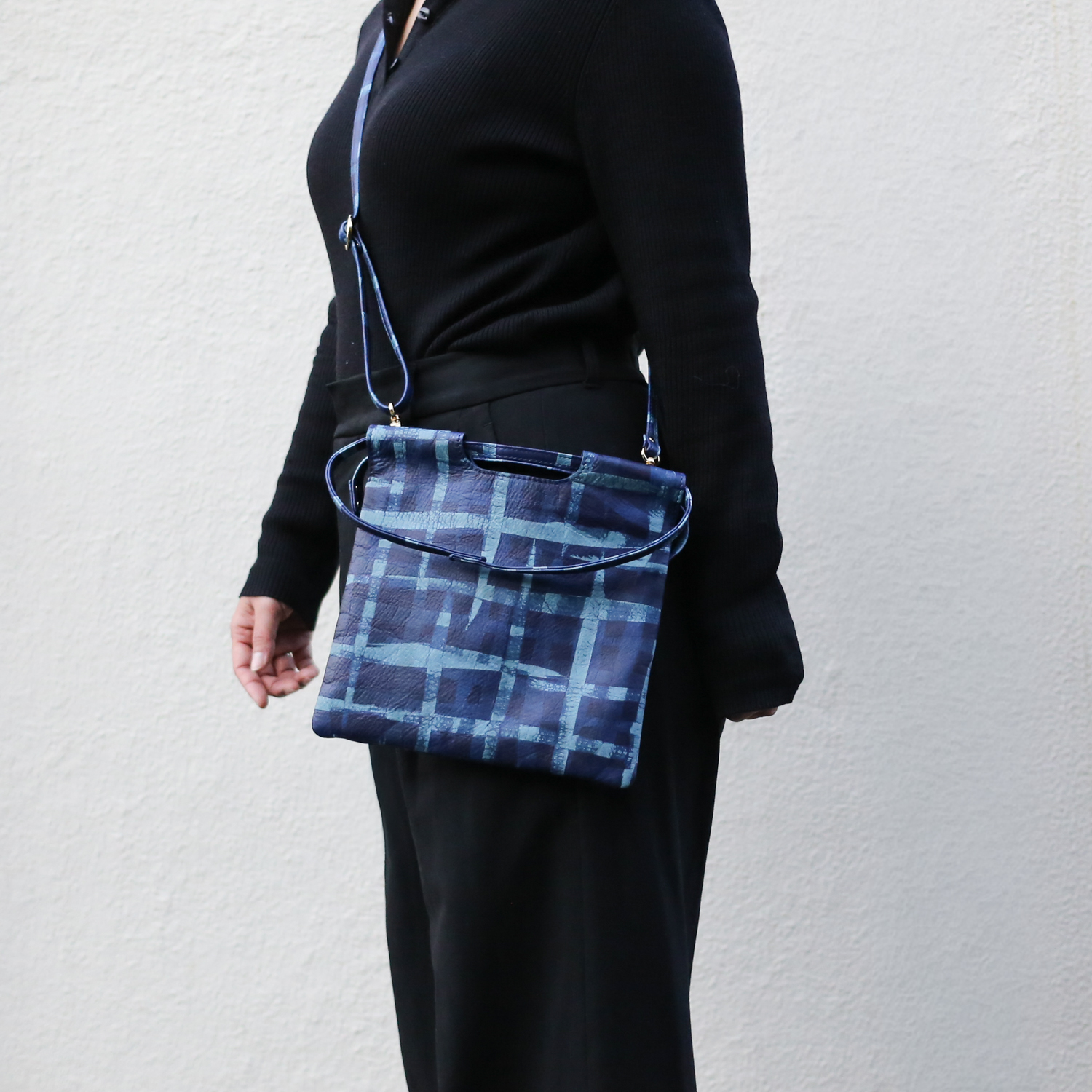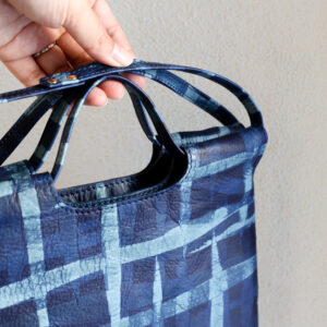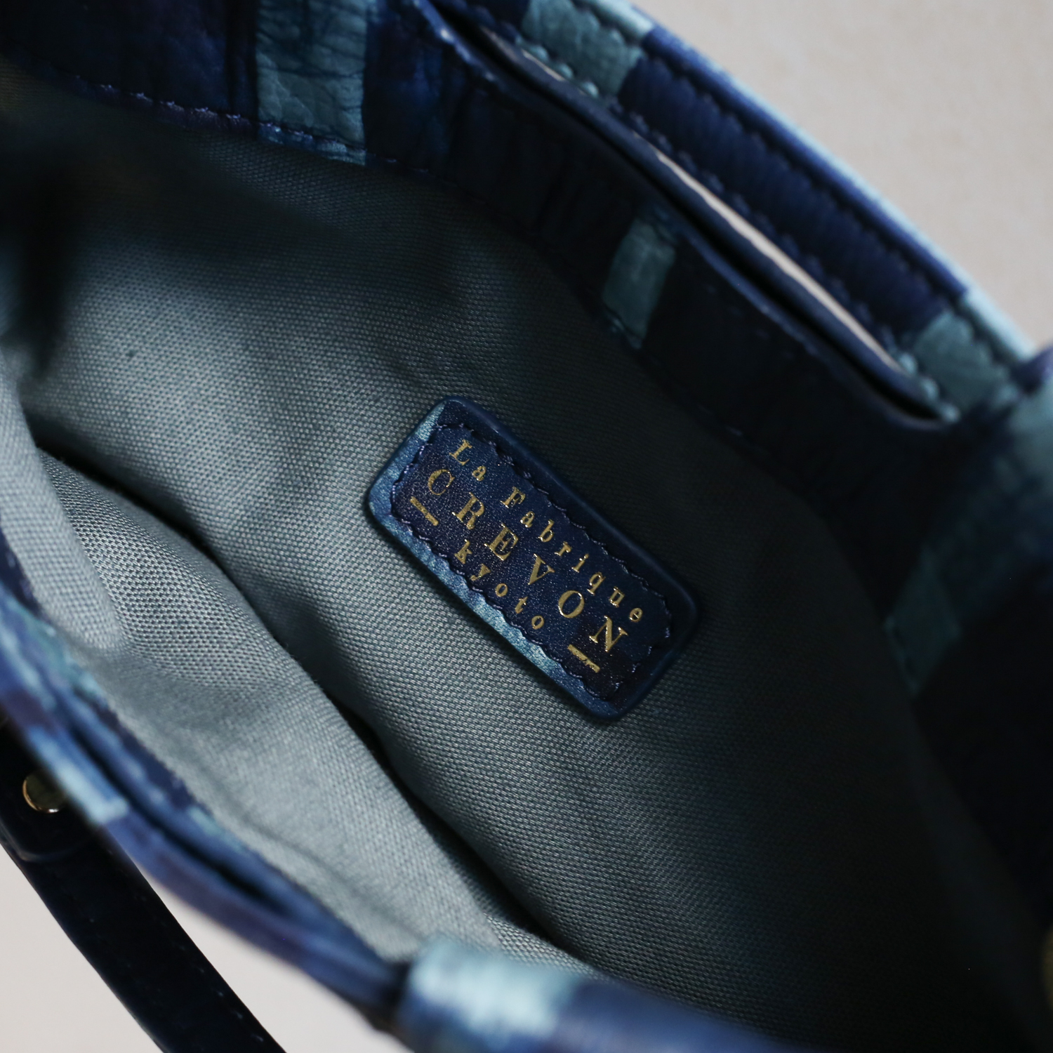 京都の藍染レザーを用い、フランス人革職人が一点ずつ仕立てるバッグです。