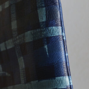 ろうけつ染めのラインナップは、「格子(こうし)」と「吹雪(ふぶき)」の2種類。 天然の藍が生み出す深く鮮やかな青に、ろうけつ染め特有の柔らかな白い文様が美しく映えます。